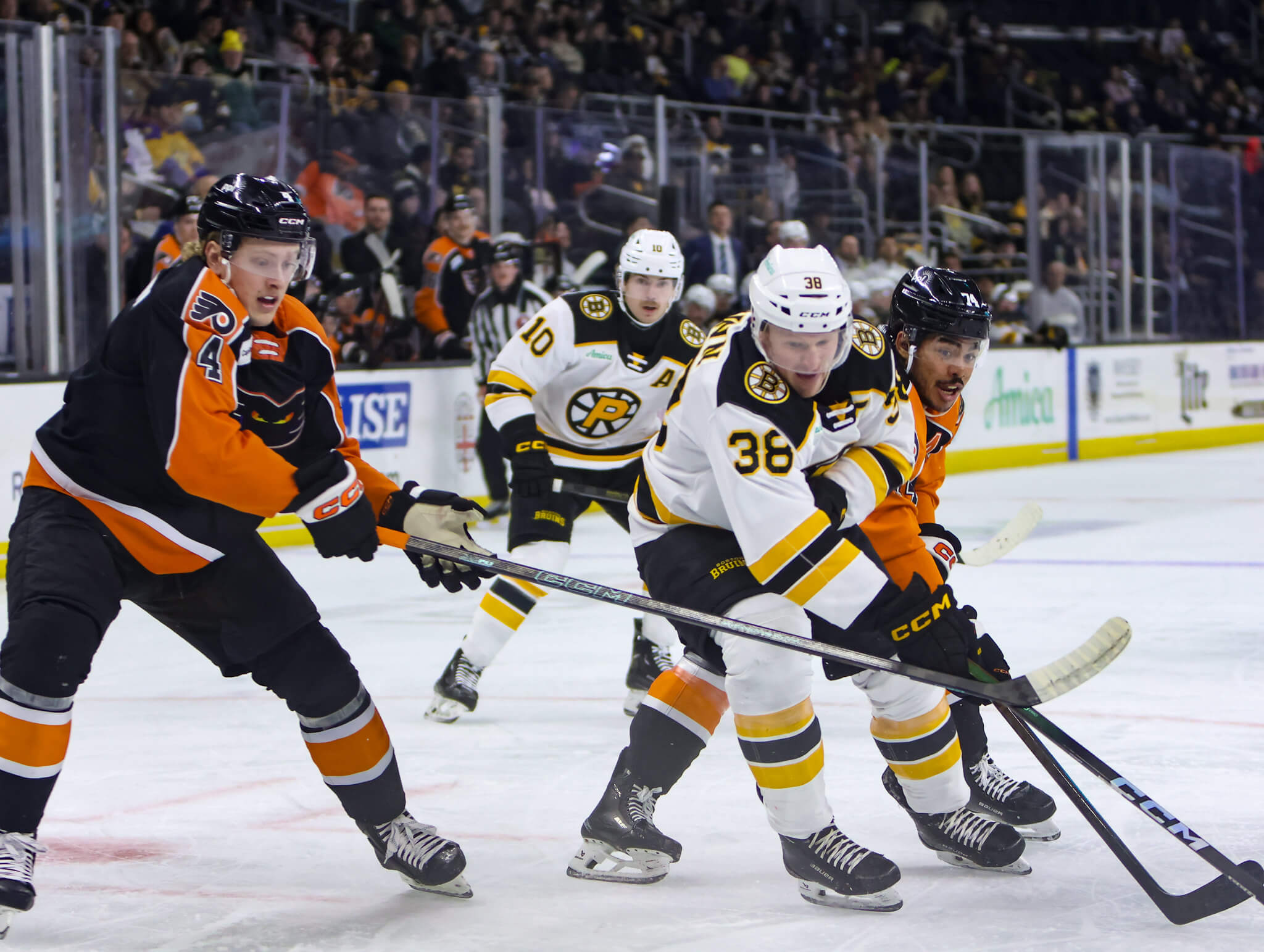 Providence scored on its own power play shortly thereafter with Victor Soderstrom snagging his second assist of the game on a center-point drive redirected at the net-front by Patrick Brown. The Bruins’ captain had played two seasons for the Philadelphia Flyers from 2021-23.