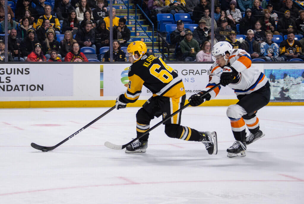 Former first-rounder Rutger McGroaty continued his torrid scoring pace since joining the Penguins just over a week ago after recovering from a preseason injury. He sniped on the power play from the top of the left circle to the upper-right corner past Kolosov’s glove on a wicked snipe at 16:19 to extned the lead to 3-0.