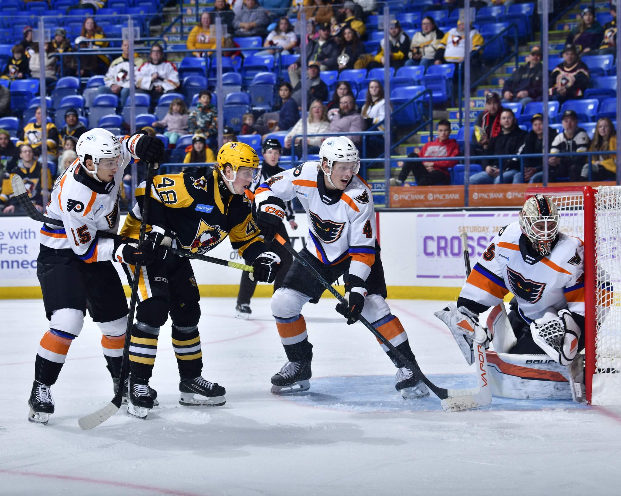 Rafael Harvey-Pinard (4th, 5th) led the Penguins with a pair of goals including an empty-netter at the end to slam the door on Lehigh Valley’s frenetic efforts at a comeback rally in the third period.