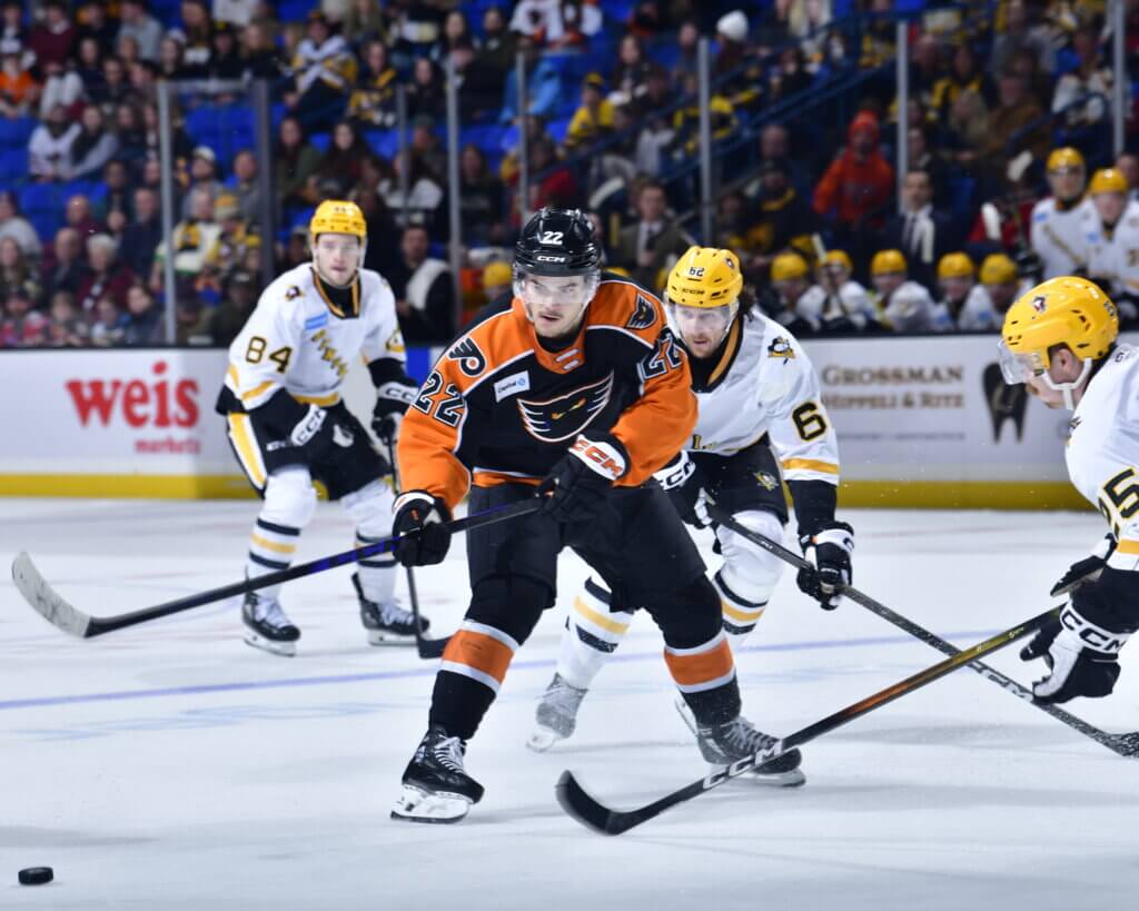 With the end result all but decided, Lehigh Valley (11-7-3) took out its frustrations on some of the Penguins’ players leading to Garrett Wilson, Jacob Gaucher, Tucker Robertson and Huner McDonald all making statements while ultimately earning their game-ending infractions.