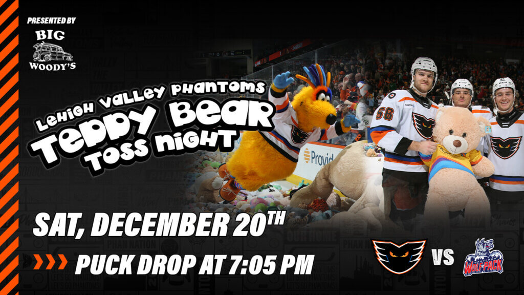 LOOKING AHEAD – The Phantoms have a big six-game homestand coming up from December 17 through December 31 including the annual Teddy Bear Toss presented by Big Woody’s on Saturday, December 20 against the Hartford Wolf Pack.