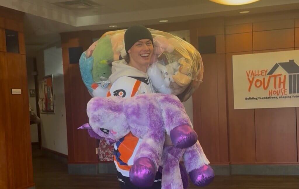 Phantoms staff were joined by Saturday’s winning goaltender, Carson Bjarnason, for the delivery day at Valley Youth House in Bethlehem where the comfort toys and plushies will be distributed to benefit local children in need and foster kids during this holiday season.