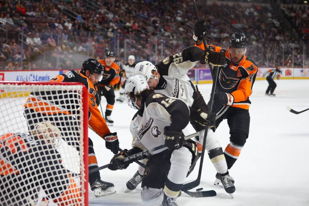 Cooper Marody (5th), Tucker Robertson (11th) and Phil Tomasino (3rd with Lehigh Valley) also found the back of the net. Meanwhile, a frustrated Bears team took out its frustrations on its rivals to the tune of three fights and some early dismissals thus potentially setting the stage for a feisty and spirited rematch in Hershey tomorrow night with the Phantoms bringing the brooms out in search of the two-game sweep.