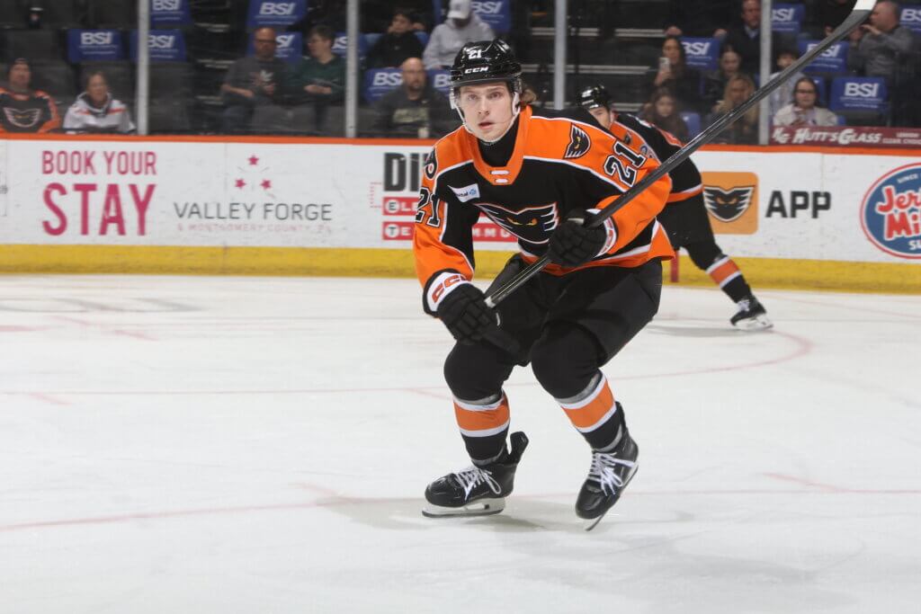 LAST TIME – Oliver Bonk (4th) got the Phantoms on the board and then Cooper Marody (6th) and Alexis Gendron (10th) strung together back-to-back goals in a third-period comeback effort. But former Philadelphia Flyer Patrick Brown (16th, 17th) struck for a pair to lead the first-place Providence Bruins past the Phantoms on Wednesday night at PPL Center. No sooner had Lehigh Valley cut Providence’s margin to 4-3 than Providence reestablished its three-goal advantage again at 6-3 in a wild opening seven minutes of the third period that saw four combined goals. Providence had put together an early strong start on goals by Matej Blumel (11th) and Georgii Merkulov (18th) in the first for a 2-0 lead that eventually grew to 3-0 and 4-1 on Brown’s goals. Jacob Gaucher’s shorthanded goal with just 13.3 seconds left concluded Lehigh Valley’s scoring.