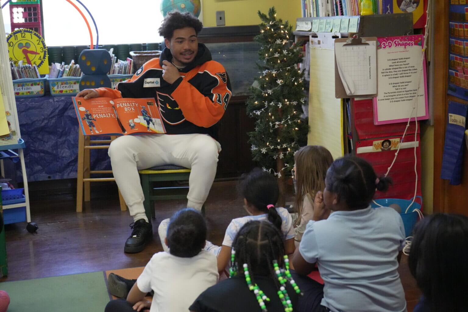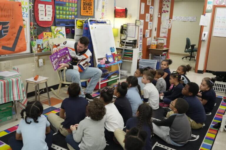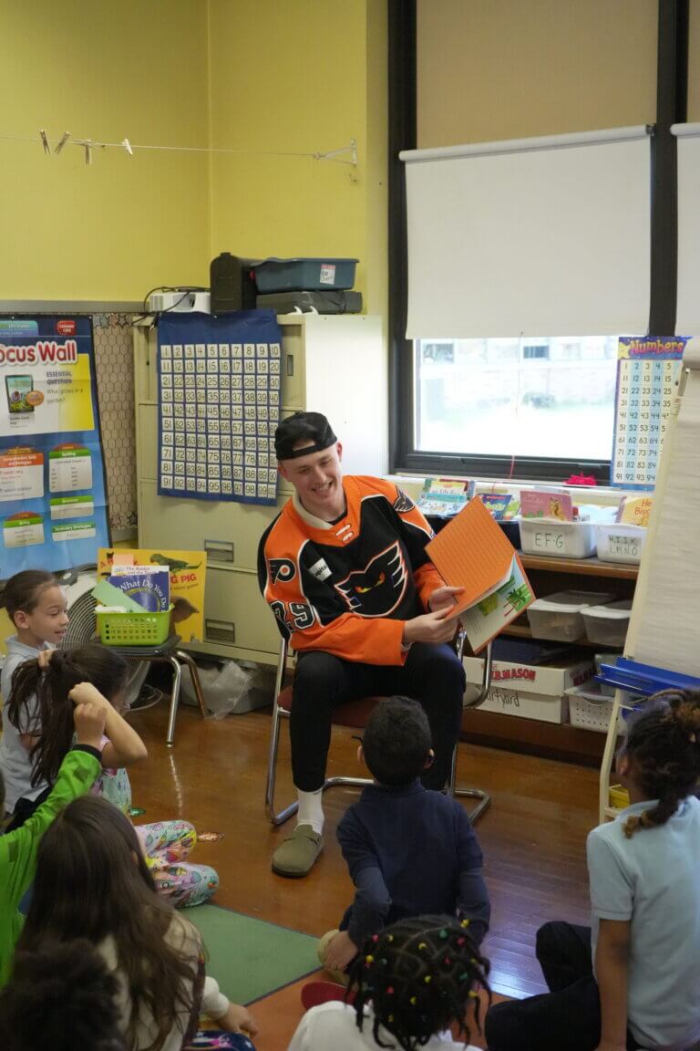Throughout the past month, Phantoms players have been visiting Allentown schools to encourage reading and teach students about hockey. As a reward for academic excellence, classrooms welcomed players including Adam Brooks, Garrett Wilson, Kevin Connauton, Ronnie Attard, Zayde Wisdom, Wyatte Wylie, and Bobby Brink to read My First Book of Hockey to kindergarten through second-grade students.