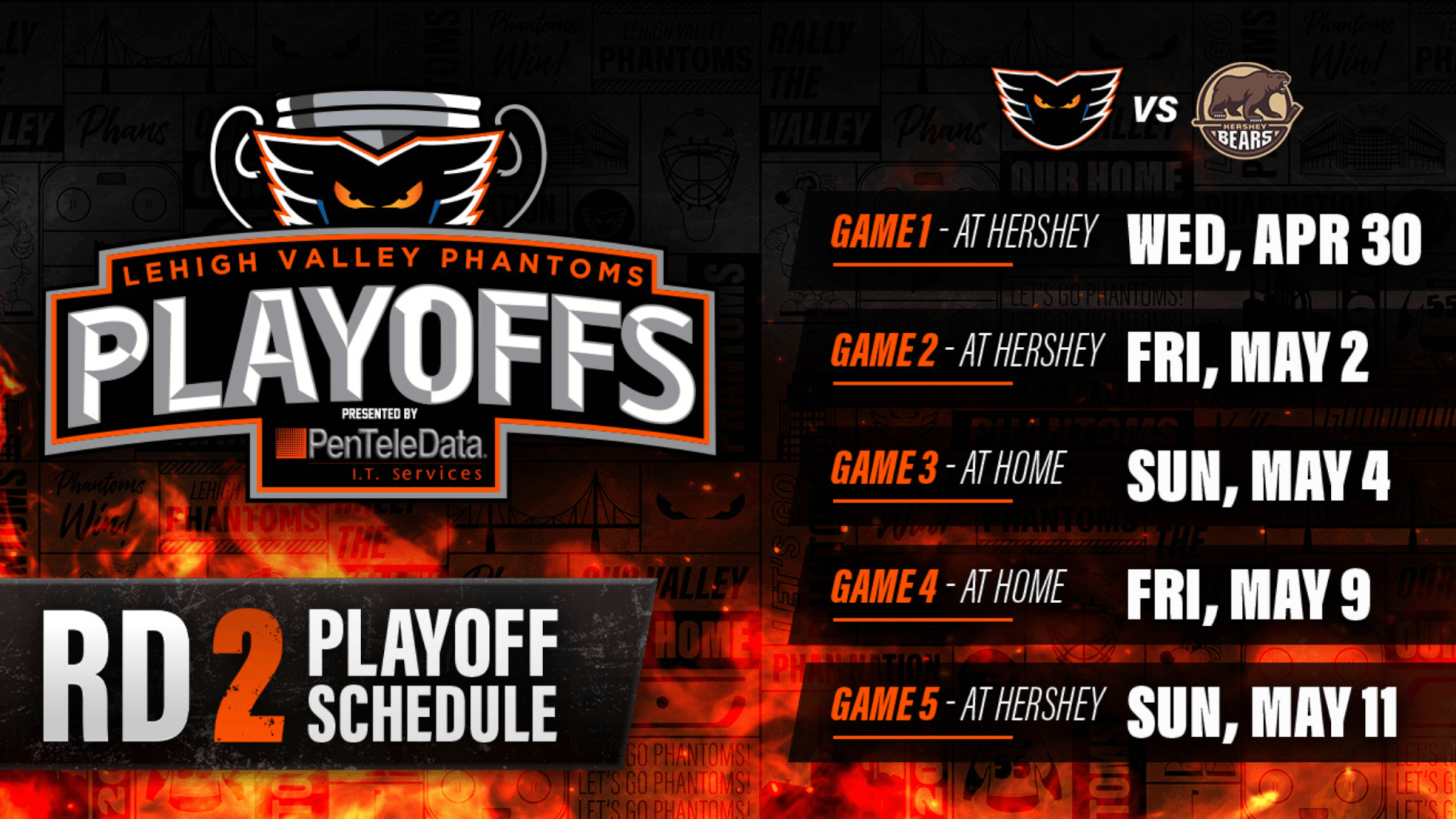 Lehigh Valley will host Game 3 on Sunday at 5:05 p.m. and will also be the home team for Game 4 on Friday, May 9 at 7:05 p.m. Sunday evening features a rally towel giveaway and all Phantoms home playoff games are “Orange Out” with fans encouraged to wear orange to the game.