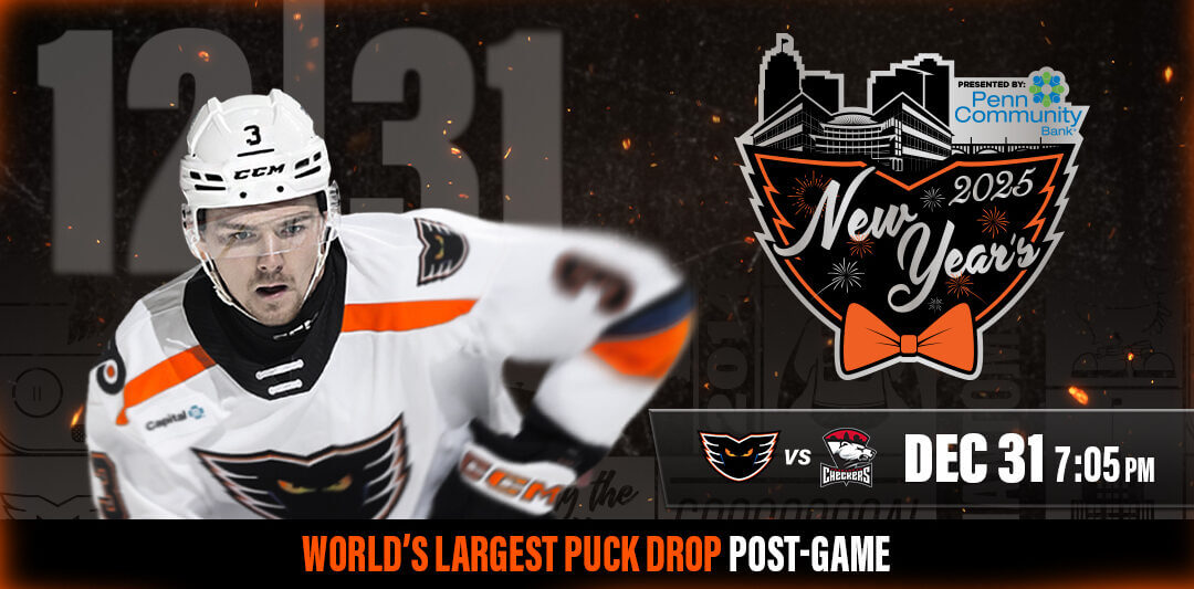 The Lehigh Valley Phantoms and Charlotte Checkers rematch on Tuesday night at PPL Center to close out 2024 in our annual New Year’s Eve game. Fans will receive Light-Up Sticks courtesy of Penn Community Bank and then the party continues outside after the game with the countdown and World’s Largest Puck Drop to welcome in 2025.