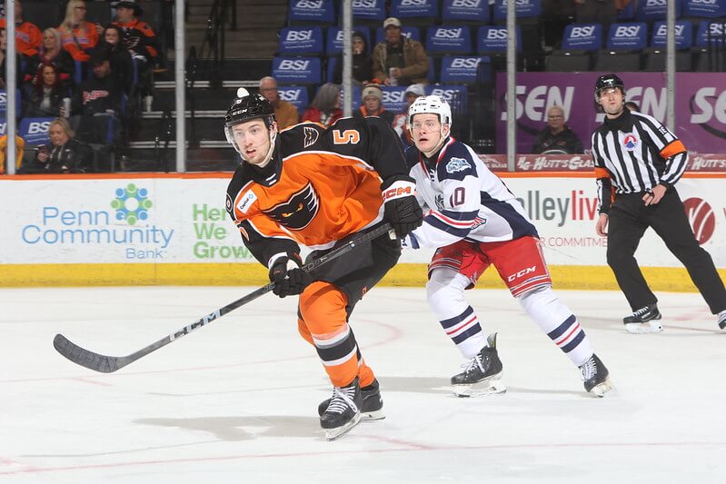 The Phantoms were poised to double its advantage at the second period’s onset with an early power-play chance, but the Wolf Pack (19-22-5) struck shorthanded to even the score. At 1:31 of the new frame, Benoit-Olivier Groulx used every bit of his reach to wire a wicked shot past Keith Petruzzelli. Ethan Samson defended the sharp shooter tightly, but Groulx’s reach and wicked release brought the score even.