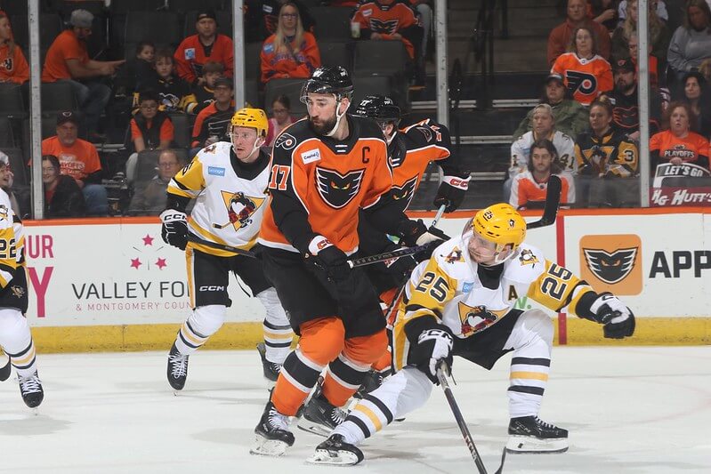 Lehigh Valley’s defense buckled down in the third and limited the Penguins to just six shots. But it was Wilkes-Barre/Scranton who would take its first lead of the series at 6:26 when Broz would find rookie second-rounder Harrison Brunicke fading across the high slot to the left circle to roof his first goal as a professional putting the Baby Pens ahead at 2-1.