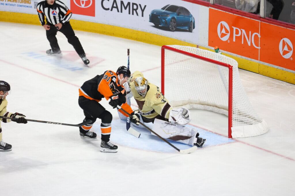 But Hershey (9-4-1) still couldn’t solve Kolosov who made one sparkling save after another in perhaps his best performance with the Phantoms. And it took a lucky bounce for the Bears to finally break through.
