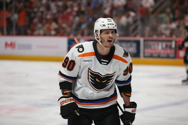 Garrett Roe chased down a dump-in behind the Phantoms goal and set up Sutter beneath the right dot who quickly offered a five-hole conversion past Petersen at 13:09 of the second propelling the Chocolate and White to a 3-0 lead.