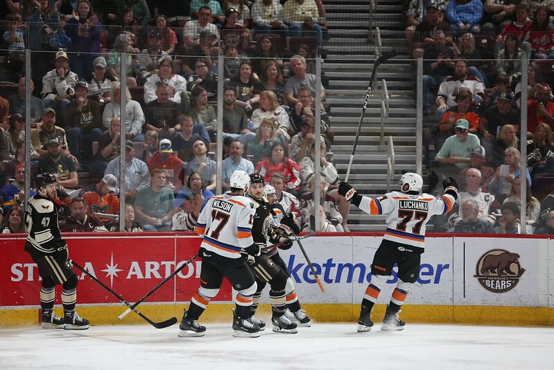 Hershey had the early advantage in the game with a pair of goals in the first period. Cal Petersen thwarted an effort by Alex Limoges off his shoulder but a scrambly situation ensued on the rebound and Spencer Smallman converted from the right slot less than six minutes into the game for a 1-0 lead.