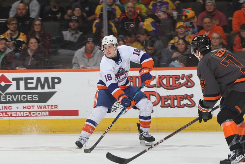 Olle Lycksell (11th, 12th) scored both goals for the Phantoms including the winner with just 1:13 left to delight the largest Lehigh Valley crowd in seven years. Lehigh Valley hit the post three times and had several other strong chances against goaltender Hunter Miska but the Islanders hung around. Chris Terry tied the game early in the third period. Parker Gahagen won his fifth consecutive decision for Lehigh Valley with 21 saves.