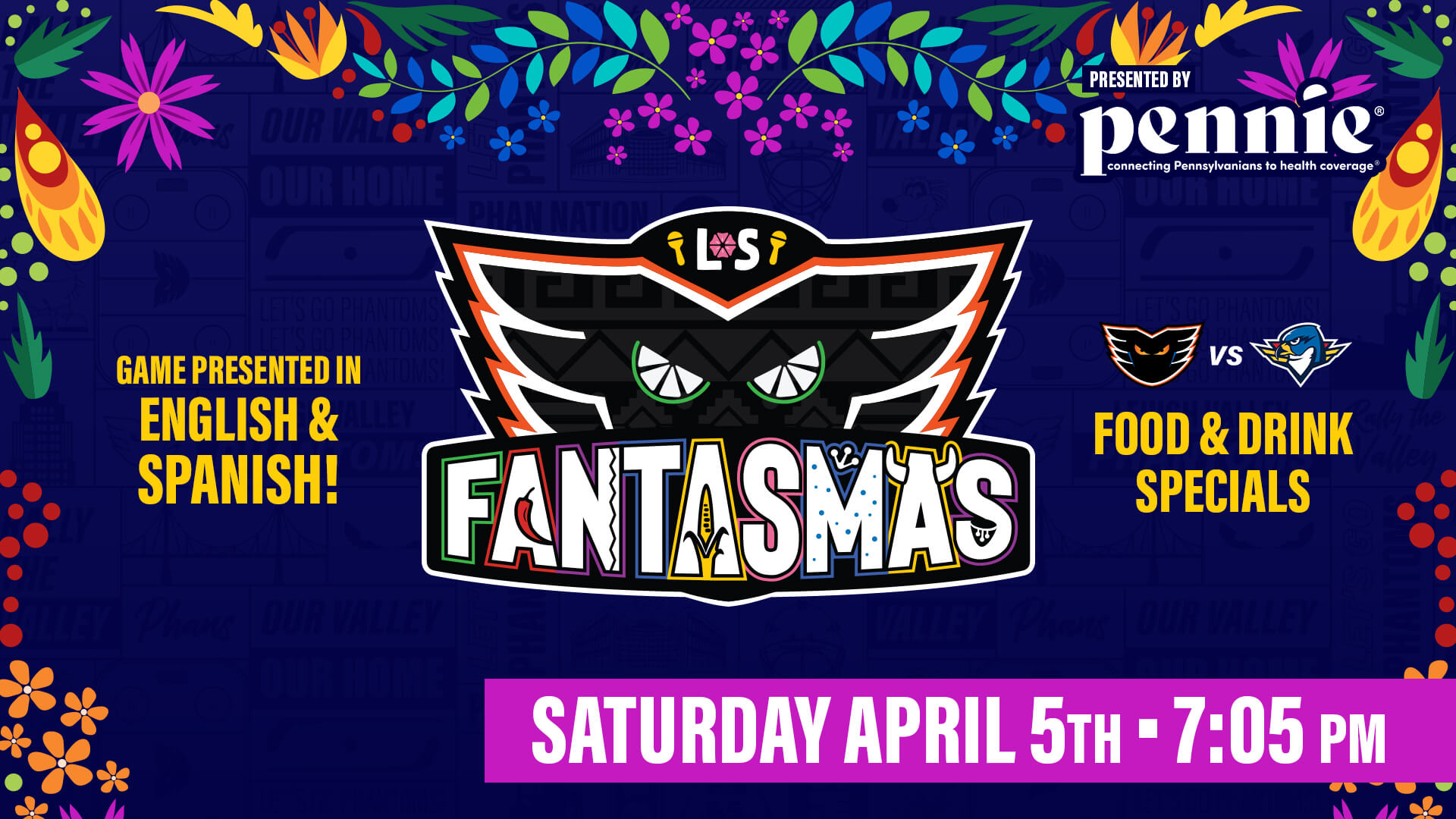 Saturday, April 5 (7:05 pm) – Phantoms vs. Springfield Thunderbirds. Los Fantasmas!