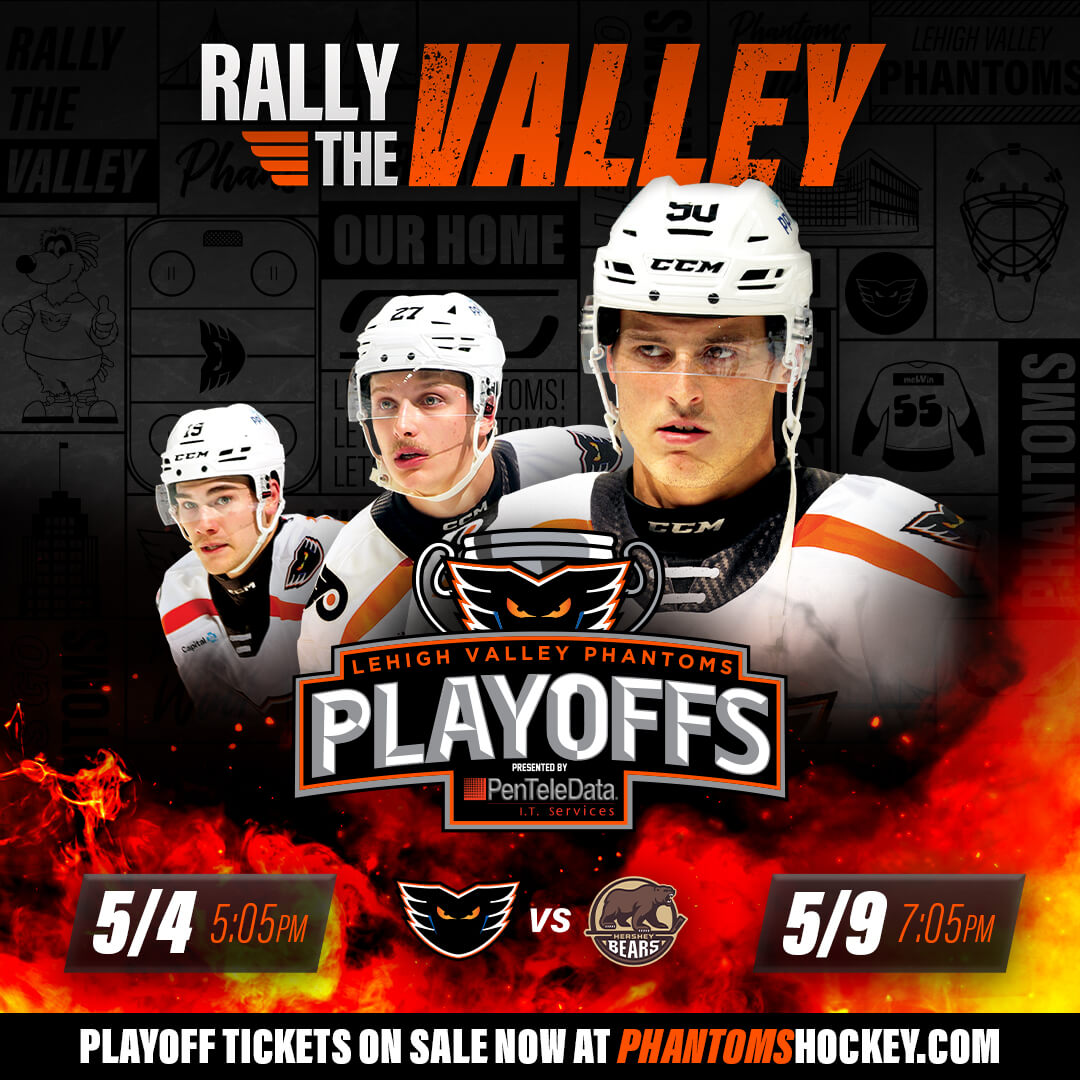 Allentown, PA – The Lehigh Valley Phantoms are thriving and surviving as they have advanced to the Atlantic Division semifinals to take on the rival Hershey Bears in a Best of 5 series. The Phantoms in the Playoffs is presented by PenTeleData.
