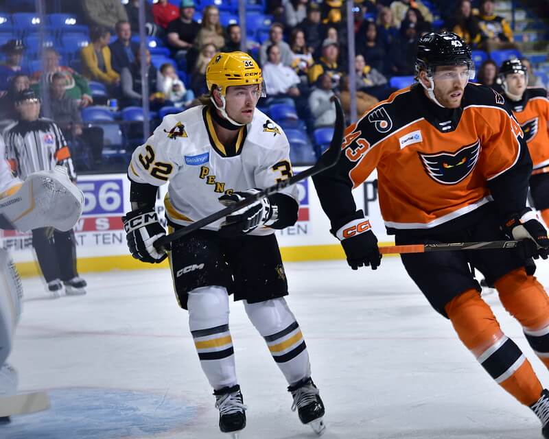 The Lehigh Valley Phantoms ran out of time in their efforts for an epic comeback at Wilkes-Barre. Lehigh Valley fell behind 4-0 in the first period but ultimately made the Penguins work for it after pulling to within a goal. Jacob Gaucher and Oscar Eklind scored 16 seconds apart of the second period and then Ethan Samson scored 6-on-4 with 51 seconds remaining. Wilkes-Barre/Scranton built their early lead on a pair of goals from Boris Katchouk and single tallies for Tristan Broz and Boko Imama.