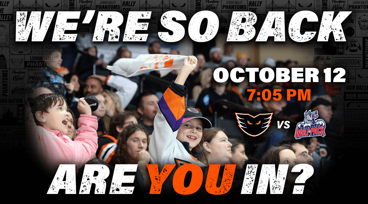The Lehigh Valley Phantoms officially begin the 2024-25 season with Opening Night at PPL Center on October 12 against the Hartford Wolf Pack.