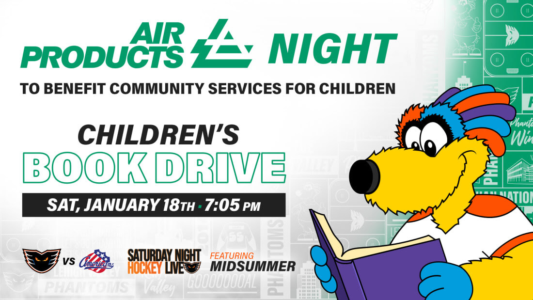 Tomorrow night’s rematch in Allentown is Air Products Night including a Children’s Book DOnation Drive.