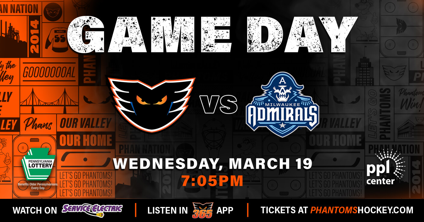 Wednesday, March 19 (7:05) – Milwaukee Admirals at Phantoms – Pregame Happy Hour, $2 Draft Beers. Cal O’Reilly of the Milwaukee Admirals returns to PPL Center.