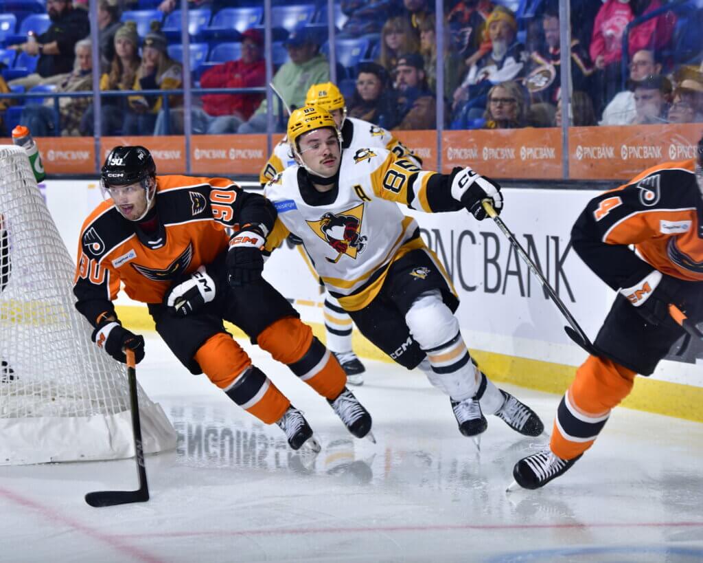 LAST TIME – A perfect road-trip wasn’t in the cards for the Lehigh Valley Phantoms who fell 4-1 at the Wilkes-Barre/Scranton Penguins on Wednesday night. Lehigh Valley finished its three-game roadie with a 2-1-0 record. The undefeated Penguins scored a pair of power-play goals and then added a penalty-shot marker from Ville Koivunen to pin Aleksei Kolosov with his first defeat of the season. Alexis Gendron’s power-play goal in the second period got the Phantoms back in the game at 2-1 but was the only blemish on Sergei Murashov who made 27 saves. Emil Andrae’s effort to equalize the score in the second period rang off the post and Zayde Wisdom also found the iron with his shot in the third period.