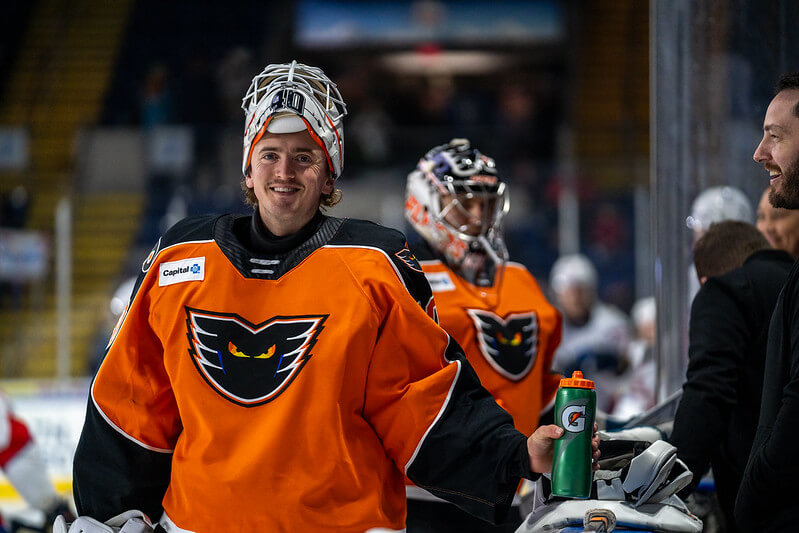 PETEY 300 – Veteran goaltender Cal Petersen is on the verge of his milestone 300th career pro game. The 30-year-old from Waterloo, IA was key to the Phantoms’ playoff run last season and has thrived in recent games since November 22 going 2-1-0, 2.31, .926 including a season-high 41-save gem last Wednesday at Hartford that featured a full-extension diving denial to his right that has to rate as the best save of the season. Petersen has played in 299 career pro games including 193 AHL games with the Lehigh Valley Phantoms and Ontario (Cal.) Reign plus 106 NHL games with the Philadelphia Flyers and Los Angeles Kings.