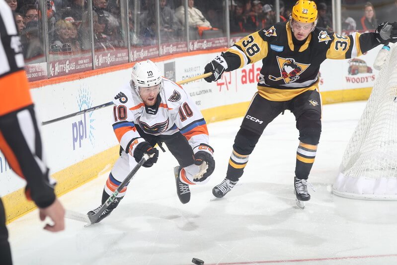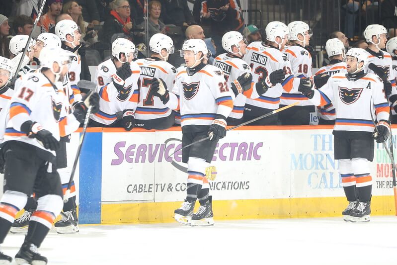 First-rounder Rutger McGroaty scored his first career pro goal on Saturday. Defenseman Owen Pickering, also a rookie first-rounder, is still in search of his first pro point. Sam Poulin was recalled to Pittsburgh. Former Reading Royals head coach Kirk McDonald is the first-year bench boss in NEPA.