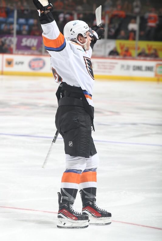 – Olle Lycksell finally broke through with his first goal of the season and it came in a big moment. His tying goal on Saturday against Utica with 3:29 left forced overtime and helped push the Phantoms to victory. Lycksell had a career-high 10 shots on goal in Saturday’s game and found the back of the net on his league-leading 50th shot on goal of the season. Last year, Lycksell racked up eight goals in his first nine games and was second in the AHL at the time on his way to a team-leading 19 goals on the season.