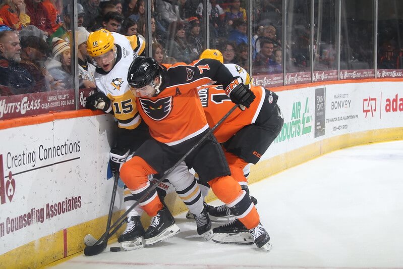 Olle Lycksell setup Helge Grans at 6:39 to again bring Lehigh Valley within a skinny one-goal deficit. Lehigh Valley came in waves and outshot the Baby Pens by an 11-4 margin in the final period and had multiple A+ opportunities to tie the score.
