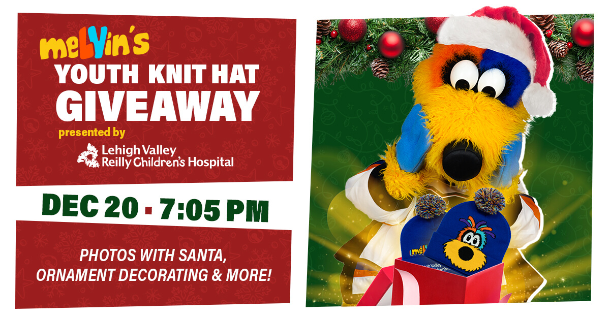 Friday, December 20 (7:05) – Toronto Marlies at Phantoms – meLVin Youth Winter Knit Cap presented by Reilly Children’s Hospital