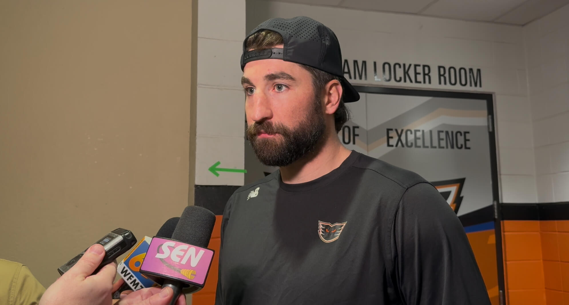 Hear from head coach Ian Laperrière, captain Garrett Wilson, defenseman Helge Grans, and defenseman Emil Andrae following Tuesday’s team practice and ahead of Wednesday’s Round 2, Game 1 matchup at Hershey.