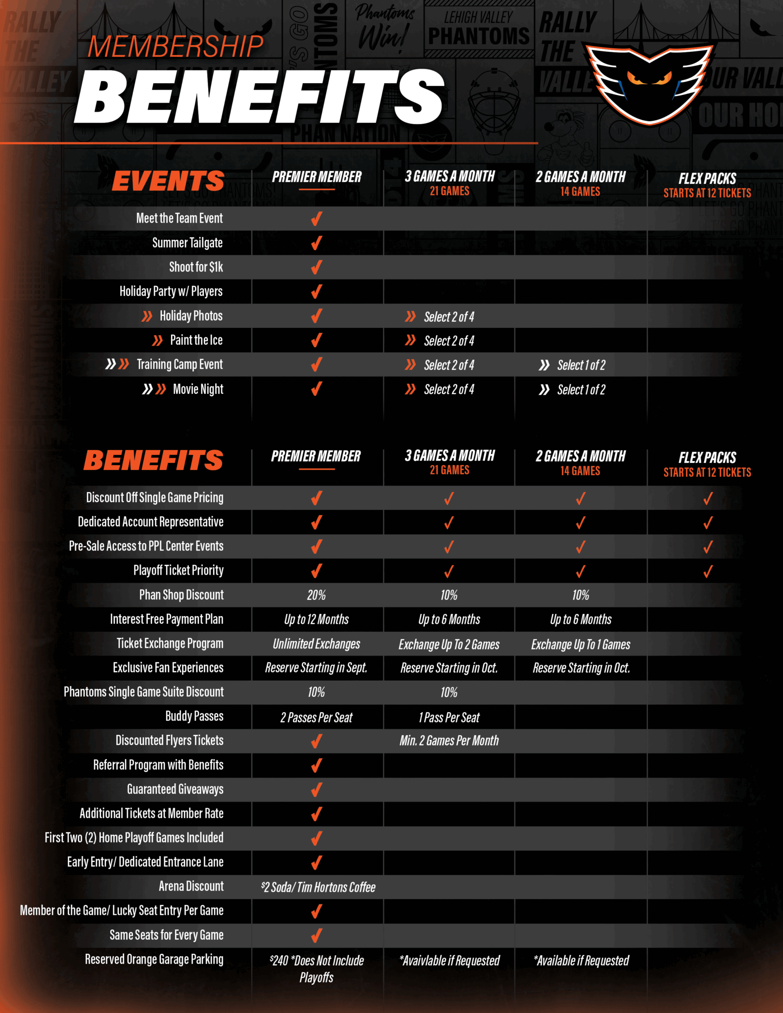 The Phantoms Premier Membership is set up in a way that you will receive year round benefits that you can take advantage of. These benefits are in addition to the seats and games you receive as part of being a Phantoms Premier Member.